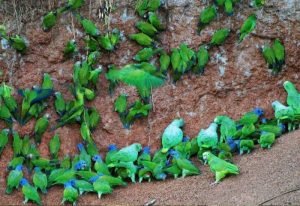Breakfast will be served before 6:00 a.m. Next, we will travel by private canoe down the Napo River to the first clay lick or collpas, a unique and special place where various species of parrots gather to feed on clay rich in minerals for rehydration, such as electrolytes, sodium, manganese, phosphorus, calcium, and potassium. This clay also neutralises toxins, such as alkaloids and tannins found in their diet...